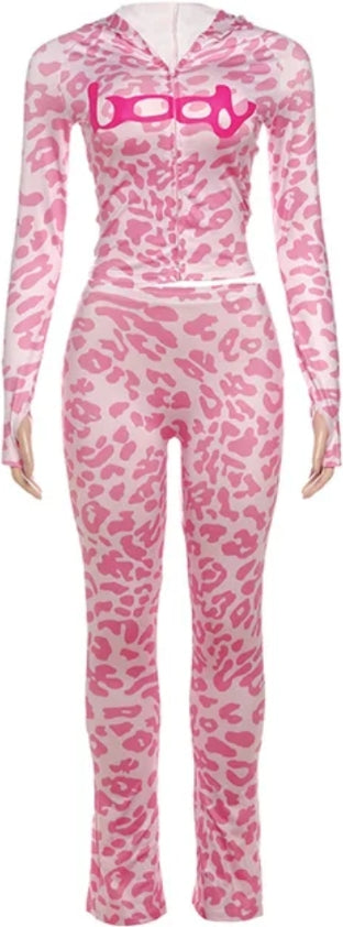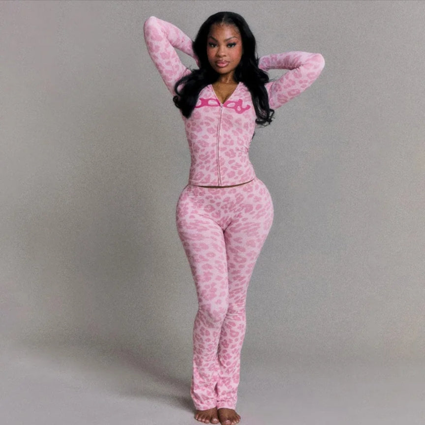 Maximize your comfort and style with our Body Set. You'll love the vibrant pink leopard print, and the two-piece design offers great stretch for a perfect fit. The long sleeves and flare pants add flair to any outfit. Upgrade your wardrobe with this must-have set.